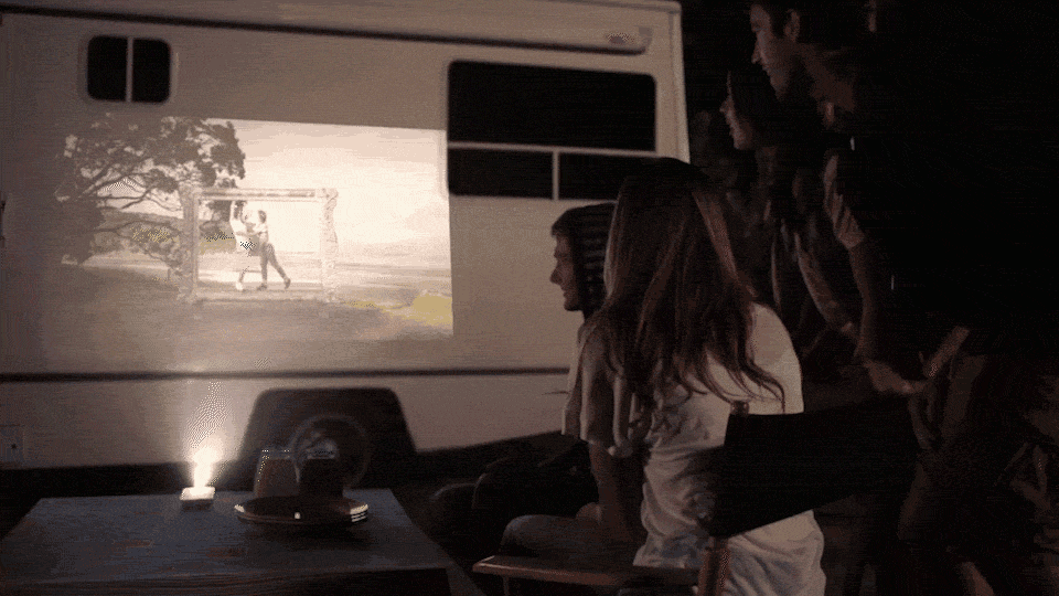 В путешествии с друзьями, Вы можете устроить кинотеатр на свежем воздухе.